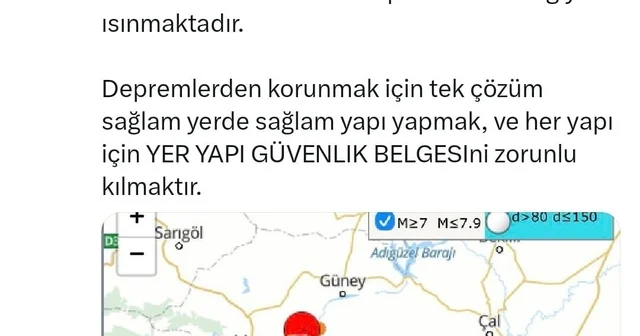 Jeofizik Yüksek Mühendisi Prof. Dr. Ahmet Ercan, Denizli’nin Buldan ilçesinde meydana gelen 5.1 büyüklüğündeki depreme ilişkin değerlendirmesini sosyal medya hesabından paylaştı. Prof. Dr. Ahmet Ercan, "Bölge M7’lik depreme yatkın" dedi.