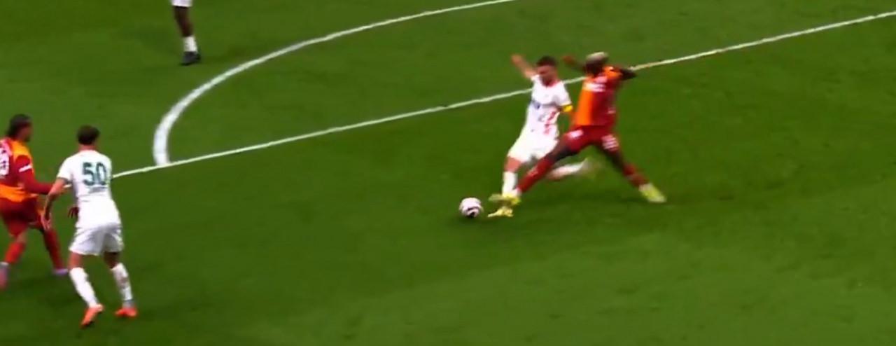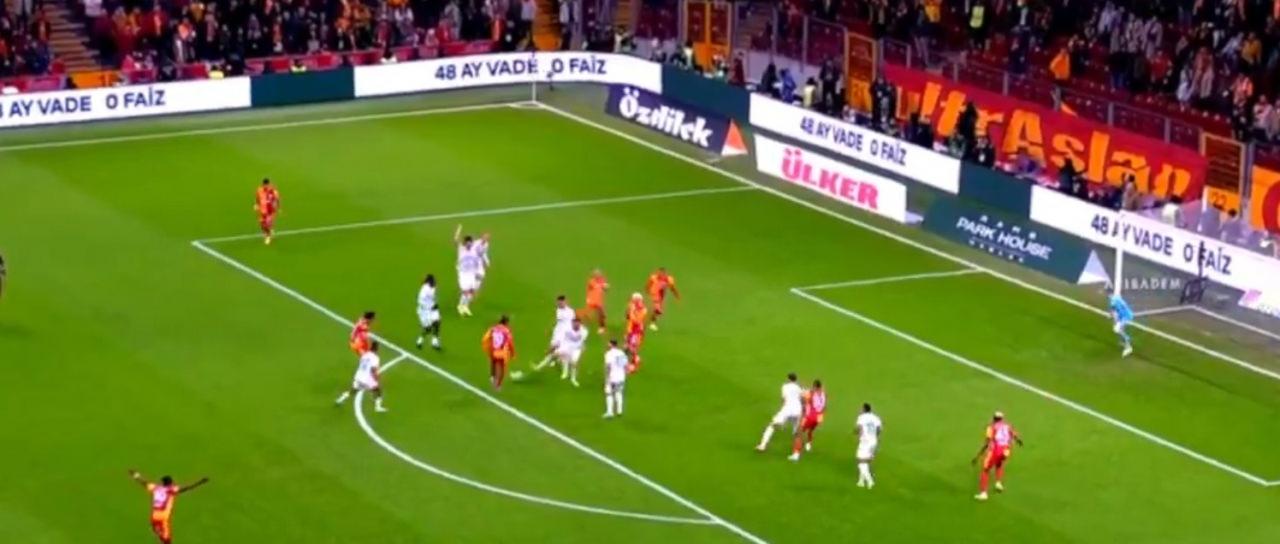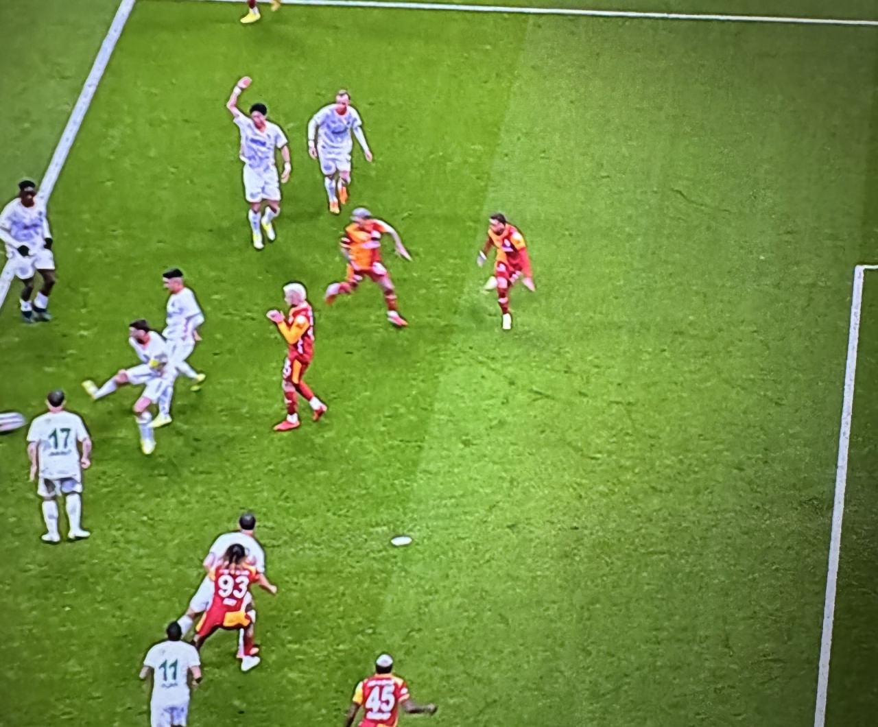 Pozisyonda Galatasaraylı oyuncular penaltı beklerken hakem Alanyaspor lehine serbest vuruş kararı verdi.