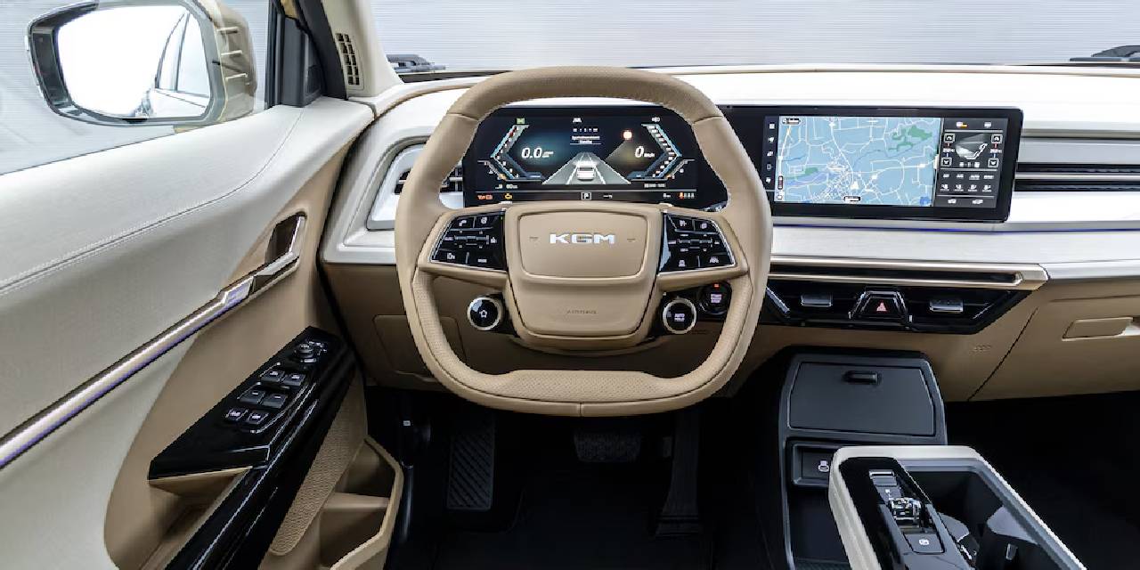 KGM Actyon, kare direksiyon simidi ve iki adet 12,3 inç ekrana sahip, ayrı bir klima kontrol paneli bulunmuyor. Ayrıca, rahatsız edici olmayan yüzer bir orta konsola da sahip.