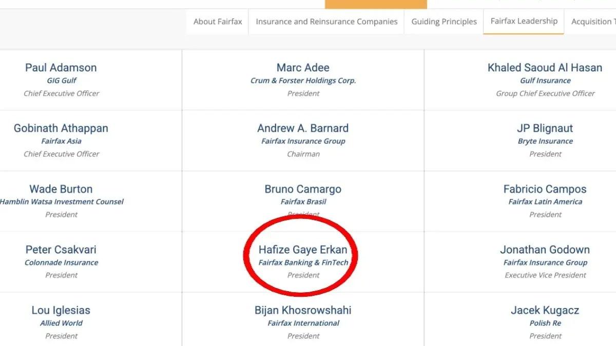 Eski Türkiye Cumhuriyet Merkez Bankası (TCMB) Başkanı Hafize Gaye Erkan, Kanada Merkezli Fairfax Financial Holdings Limited firmasında "Bankacılık ve Sigorta Teknolojisi Başkanı" olarak göreve başladı.