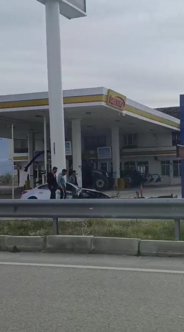 Refüjden yolun karşısına geçmek isteyen traktöre otomobil çarptı