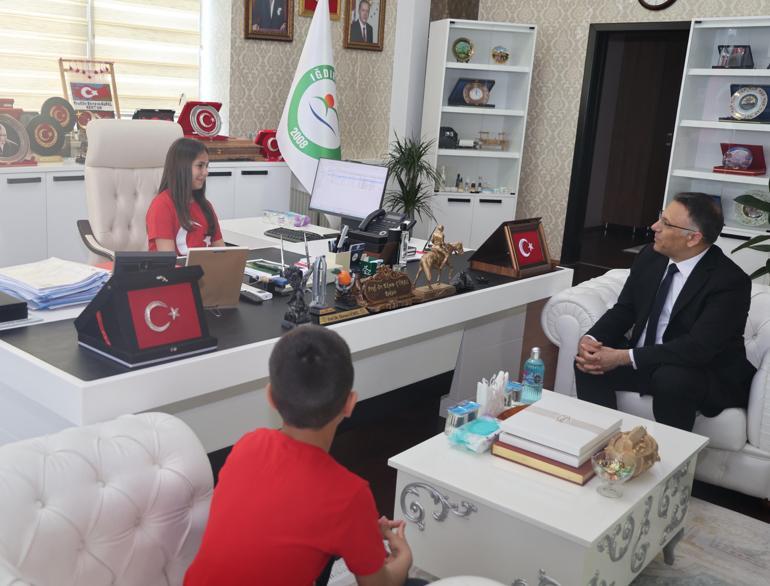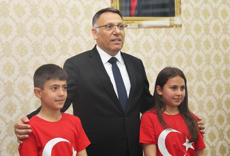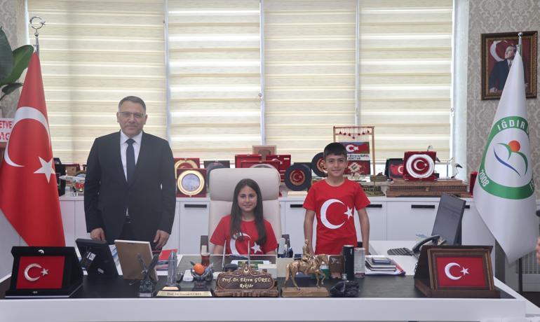 Iğdır Üniversitesi Rektörü Prof. Dr. Ekrem Gürel, 23 Nisan Ulusal Egemenlik ve Çocuk Bayramı kutlamaları kapsamında koltuğunu Melekli Atatürk İlköğretim Okulu 4-A sınıfı öğrencileri Defne Miray Çatalkaya ve Poyraz Varol’a devretti.