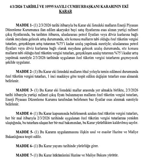 Yeni uygulamaya göre, uluslararası petrol fiyatları veya döviz kurlarına bağlı olarak akaryakıt fiyatlarında artış olması durumunda, Özel Tüketim Vergisi (ÖTV) tutarı artışın yüzde 75’i oranında azaltılacak. Böylece zamların pompa fiyatlarına etkisinin sınırlanması hedefleniyor.