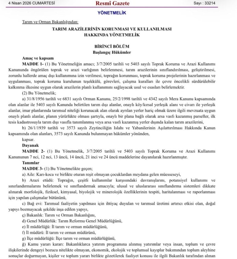 Tarım arazilerinin korunmasına yönelik hazırlanan yeni yönetmelik, 4 Nisan 2026 itibarıyla yürürlüğe girdi. İzinsiz yapılaşmaya karşı "sıfır tolerans" dönemini başlatan düzenleme, tatil bölgelerindeki tesis sahiplerini panikletti.