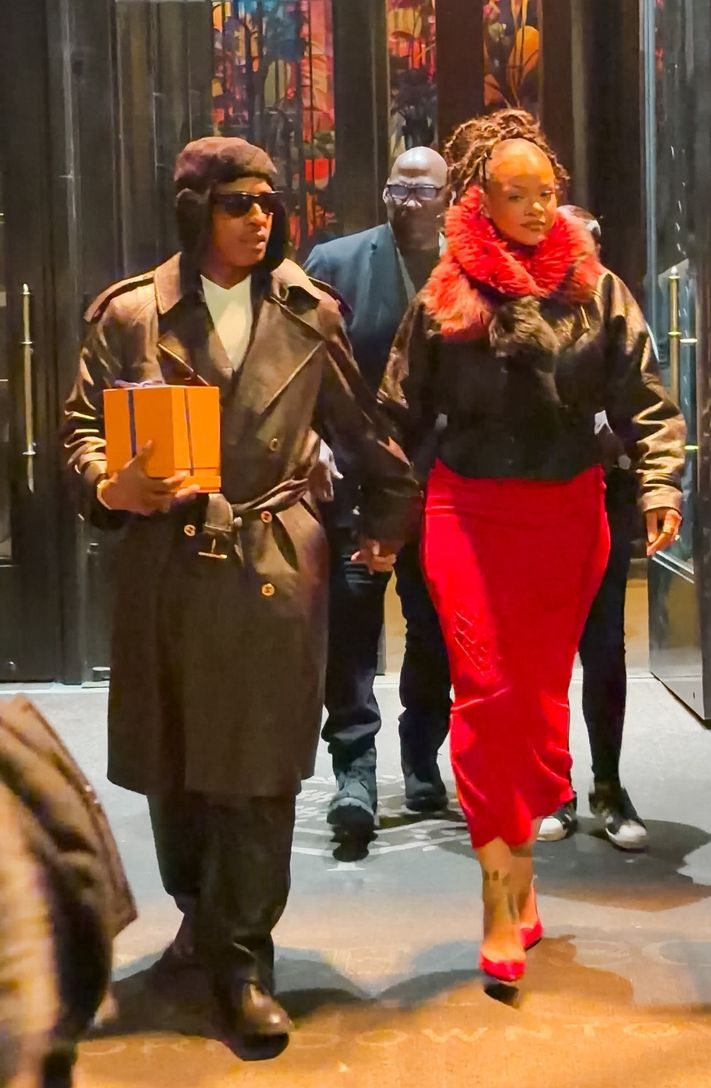 Sevgililer Günü kutlaması için Rihanna'nın aşkın rengi kırmızı bir elbise giymesi dikkat çekti. Art arda flaşlar patlarken otomobillerine ilerlemeye çalışan ikili, birbirlerinin ellerini bir an olsun bırakmadı. ASAP Rocky, kaldırım, basamak gibi yerlerde çocuklarının annesine centilmence yardım etti.
