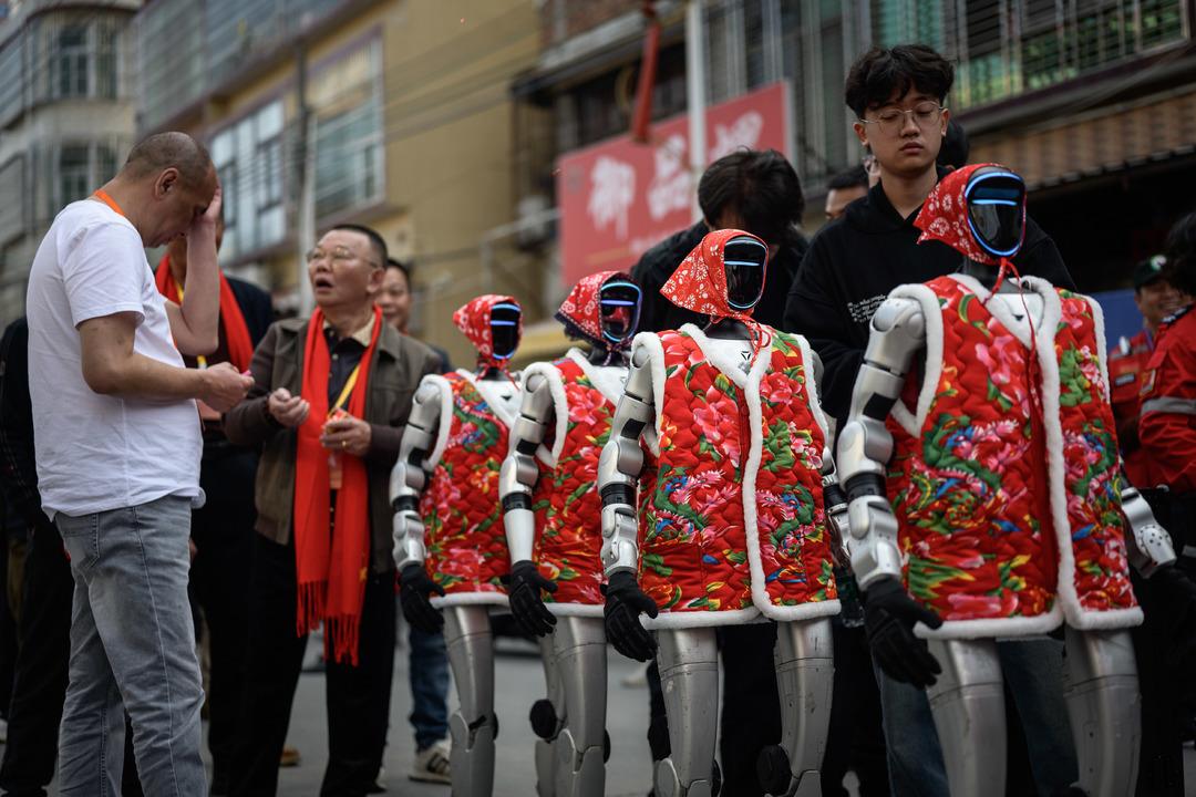 Ekinlikte insansı robotların da kalabalığın arasında yer alması, ilginç görüntülere sahne oldu.
