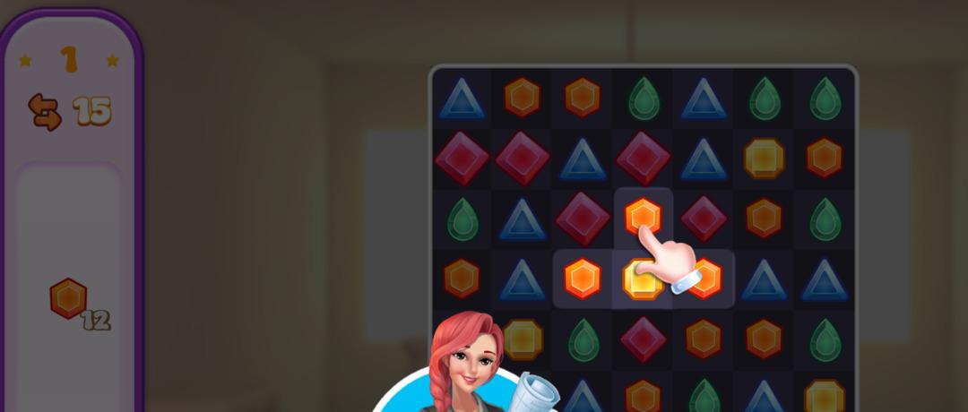 Room Blast 2 Match and Decor'da oyuncular, renkli taşları eşleştirerek bölümleri