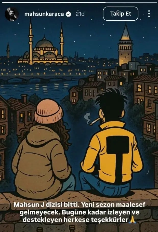 "Mahsun J. dizisi bitti. Yeni sezon maalesef gelmeyecek. Bugüne kadar izleyen ve destekleyen herkese teşekkürler."