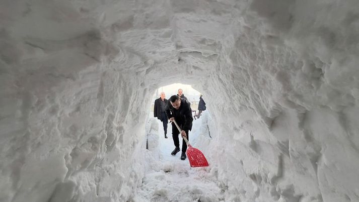 Aytekin, arkadaşlarının da yardımıyla 2 saat süren bir çalışmanın ardından 5 metre uzunluğunda, 1 metre genişliğinde ve yaklaşık 1,5 metre yüksekliğinde kardan tünel yaptı.