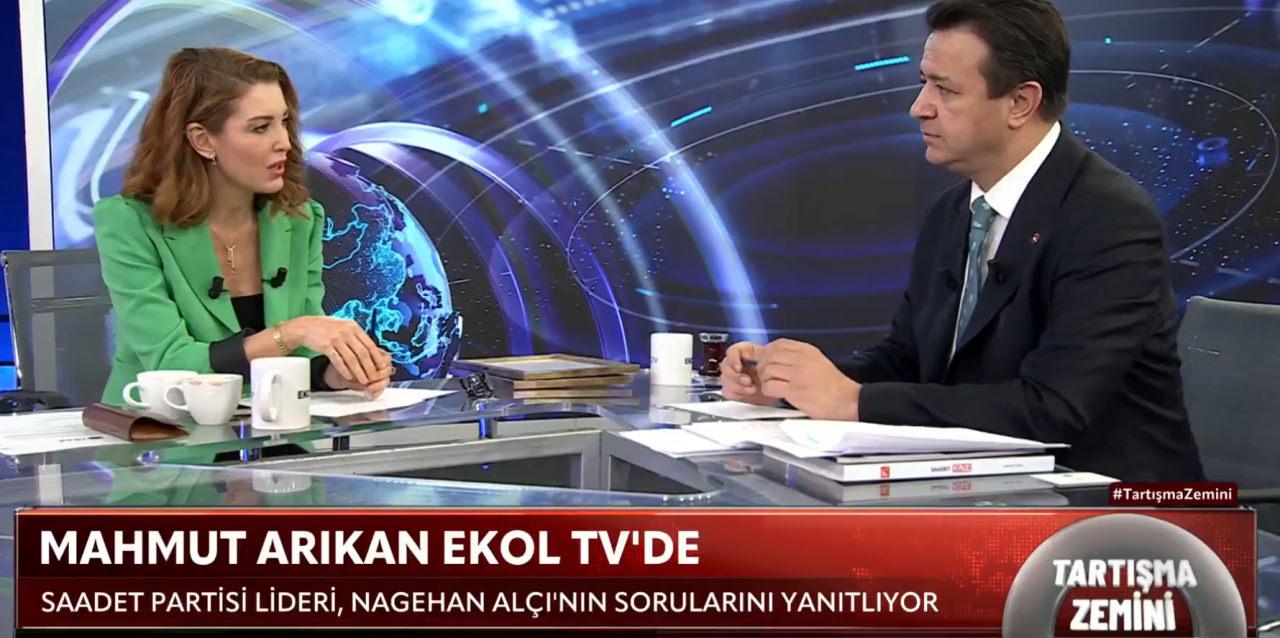 Saadet Partisi Genel Başkanı Mahmut Arıkan, Ekol TV ekranlarında yayınlanan ve Nagehan Alçı'nın sunduğu "Tartışma Zemini" programına konuk oldu. Arıkan, programda siyaset gündemine ilişkin önemli değerlendirmelerde ve dikkat çeken açıklamalarda bulundu.