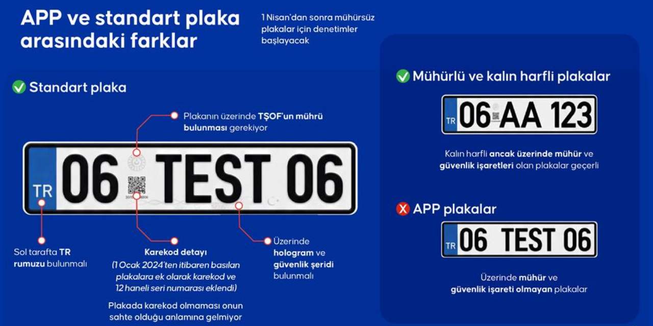 Kamuoyunda "APP plaka" olarak bilinen standart dışı plakaların kullanımına ağır cezalar kesilmesine neden olan düzenleme tepki çekerken usulsüz plakaları kullananların değişim yapması için 1 Nisan'a kadar ek süre tanındı.