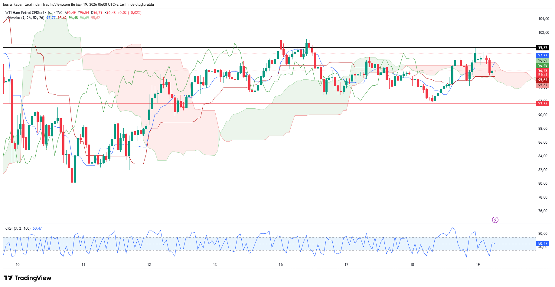 ABD ham petrolü (WTI) yüzde 4 artışla 99,82 dolara çıktı. Ham petrol bugün sabah seansında 07.07'de