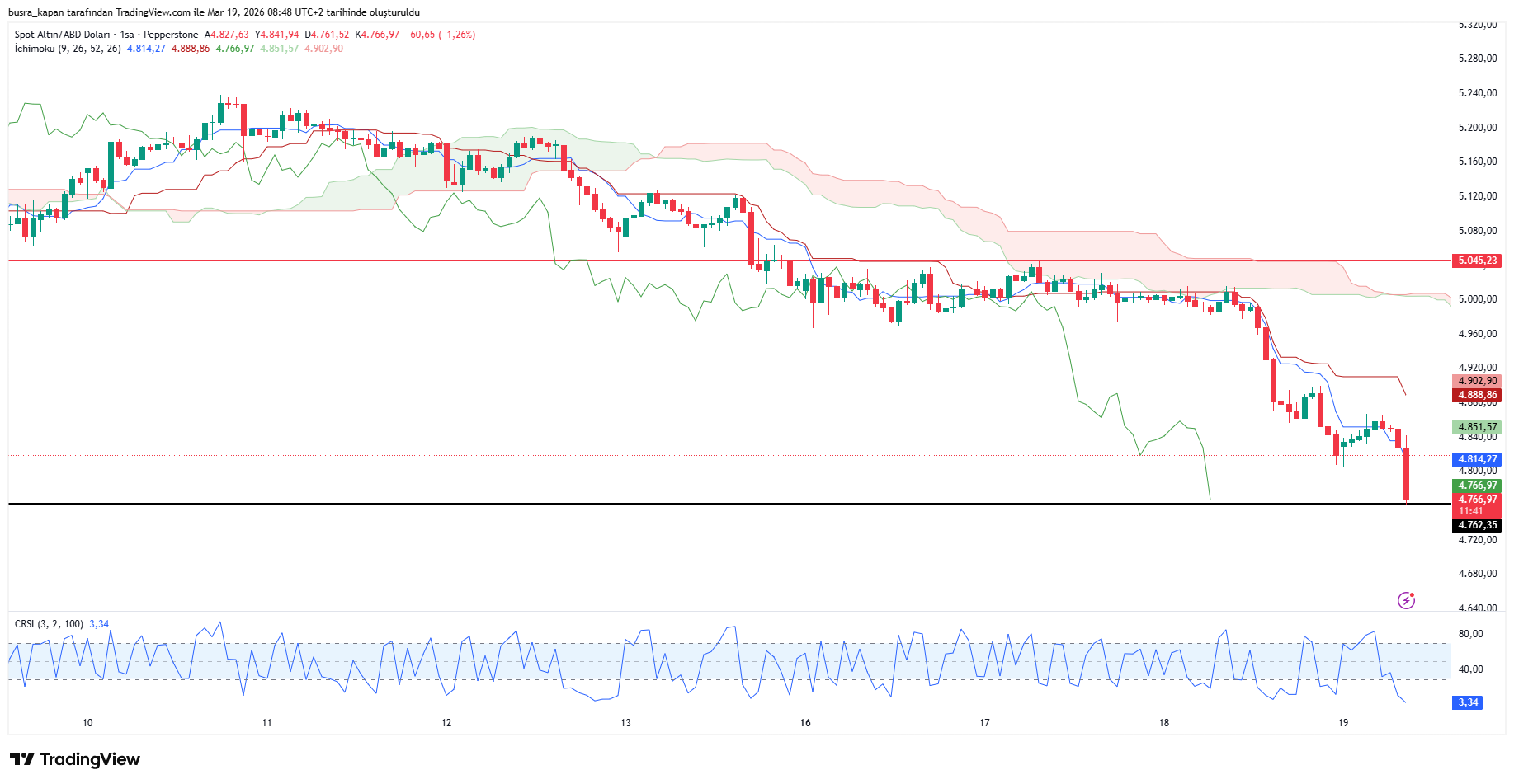 ALTIN DİRENİYORDün ABD tarafında Fed faiz kararı toplantısı takip edildi. Fed beklentiler doğrultusunda faizleri yüzde 3,5–3,75 hedef aralığında sabit bıraktı. Fed'in kararının ardından altın fiyatları sert düşüş yaşadı. Altın fiyatları dün gece 4 bin 800 dolara kadar gerileyerek son 40 günün en düşük seviyesini gördü. Altın fiyatları sabah bir miktar toparlanarak 4 bin 848 dolara yükseldikten sonra yeniden sert düşüş yaşadı. Ons altın sabah 09.47'de 4 bin 765 dolara geriledi. Ons altın dakikalar içinde 83 dolar kaybetti.