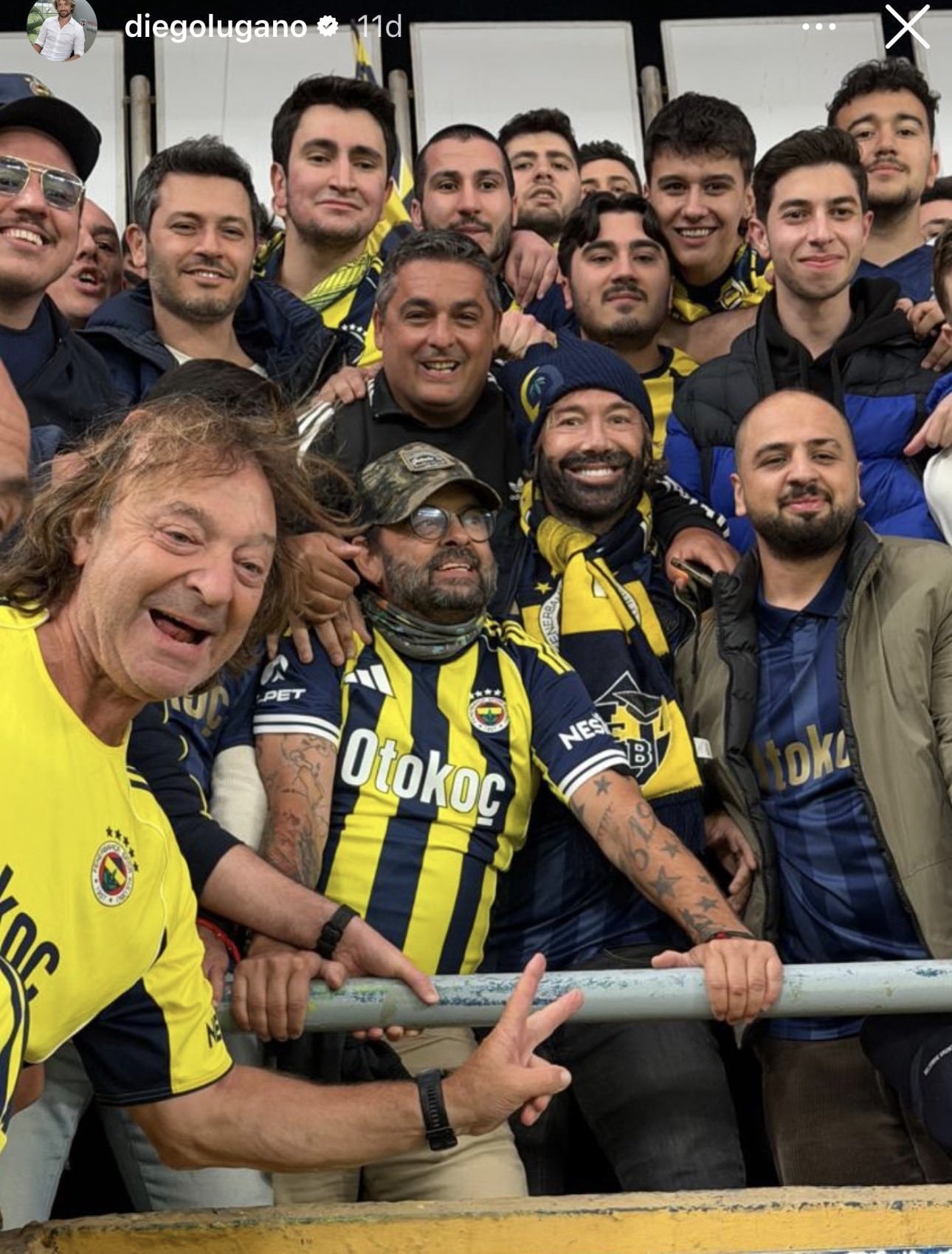 Uzun yıllar sarı lacivertli takımda top koşturan Uruguaylı savunmacı Diego Lugano, dev mücadeleyi yerinde takip etmek için İstanbul’a geldi. Lugano, kendini kamufle ederek taraftarların arasına karıştı.