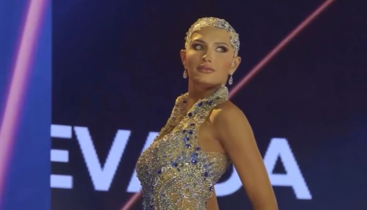Sickler'ın cesur eylemi, güzellik yarışması seyircilerini ayağa kaldırdı. Mary Sickler, podyumda kıyafetiyle uyumlu, parıltılı bir başlıkla yürüdü.