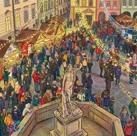 Hâlâ bulamadınız mı? İşte size küçük bir ipucu: Görüntünün ön planına, özellikle çeşmenin yakınında duran kalabalığa dikkatlice bakın. Herkes kışın tadını çıkarırken, bir kişi tercihini klasik bir yaz lezzeti olan dondurmadan yana kullanıyor.