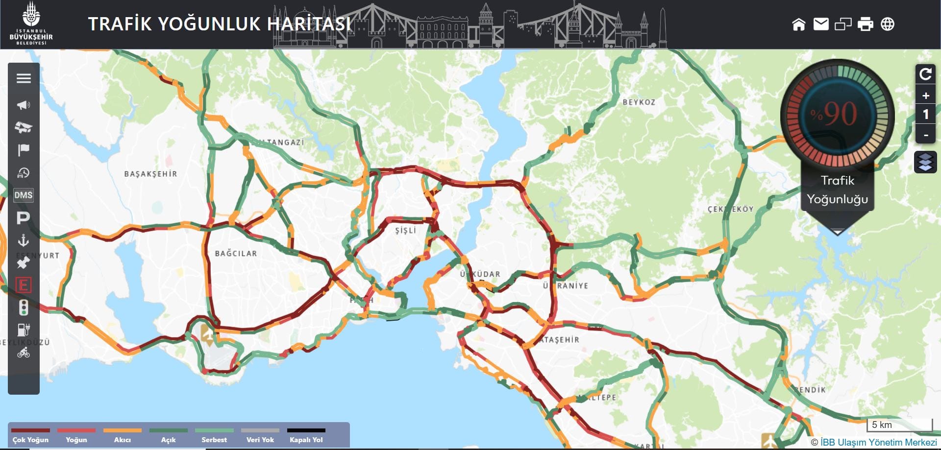 Saat 17.30 sıralarında İBB Trafik'e göre yoğunluk yüzde 90'a ulaştı.
