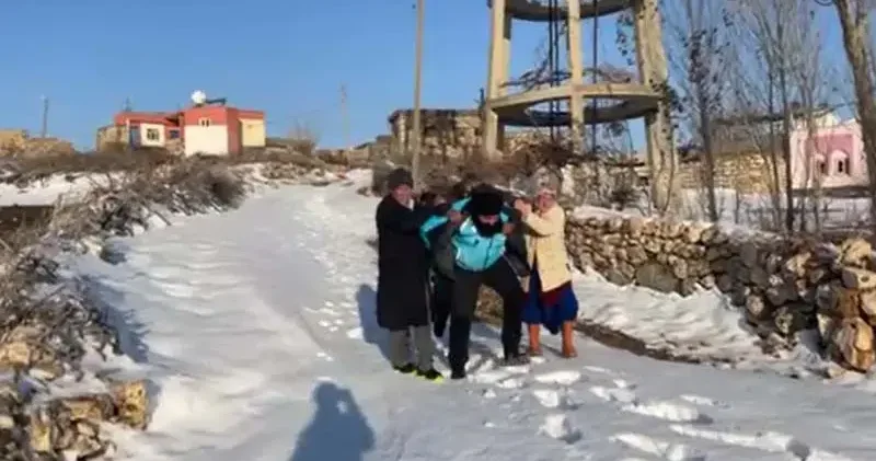 Kar yağışının etkili olduğu Midyat ilçesi kırsal Danışman Mahallesi’nde rahatsızlanan Nuri İnan için yakınları, 112 Acil Çağrı Merkezi’nden yardım istedi. Mahalle yolunun kardan kapanması üzerine bölgeye UMKE ekipleri sevk edildi. UMKE aracının belirli noktadan sonra karda ilerleyememesi üzerine ekipte görevli Hüseyin Cihan Özdoğru, İnan’ı yaklaşık 500 metre uzaklıktaki ambulansa sırtında taşıdı. Ambulansla Midyat Devlet Hastanesi’ne kaldırılan İnan’ın sağlık durumunun iyi olduğu öğrenildi. Hastanın yakınları sağlık ekiplerine teşekkür etti.