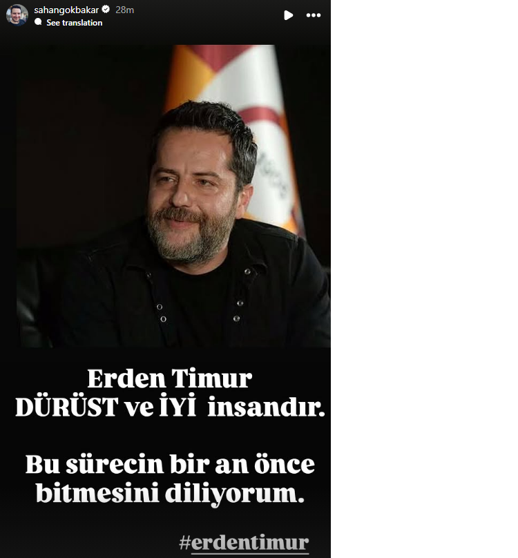 ŞAHAN GÖKBAKAR'DAN ERDEN TİMUR PAYLAŞIMISosyal medya hesabından paylaşım yapan ünlü oyuncu Şahan Gökbakar, Erden Timur'a destek verdi. Gökbakar, paylaşımında "Erden Timur dürüst ve iyi bir insandır. Bu sürecin bir an önce bitmesini diliyorum" ifadelerine yer verdi.
