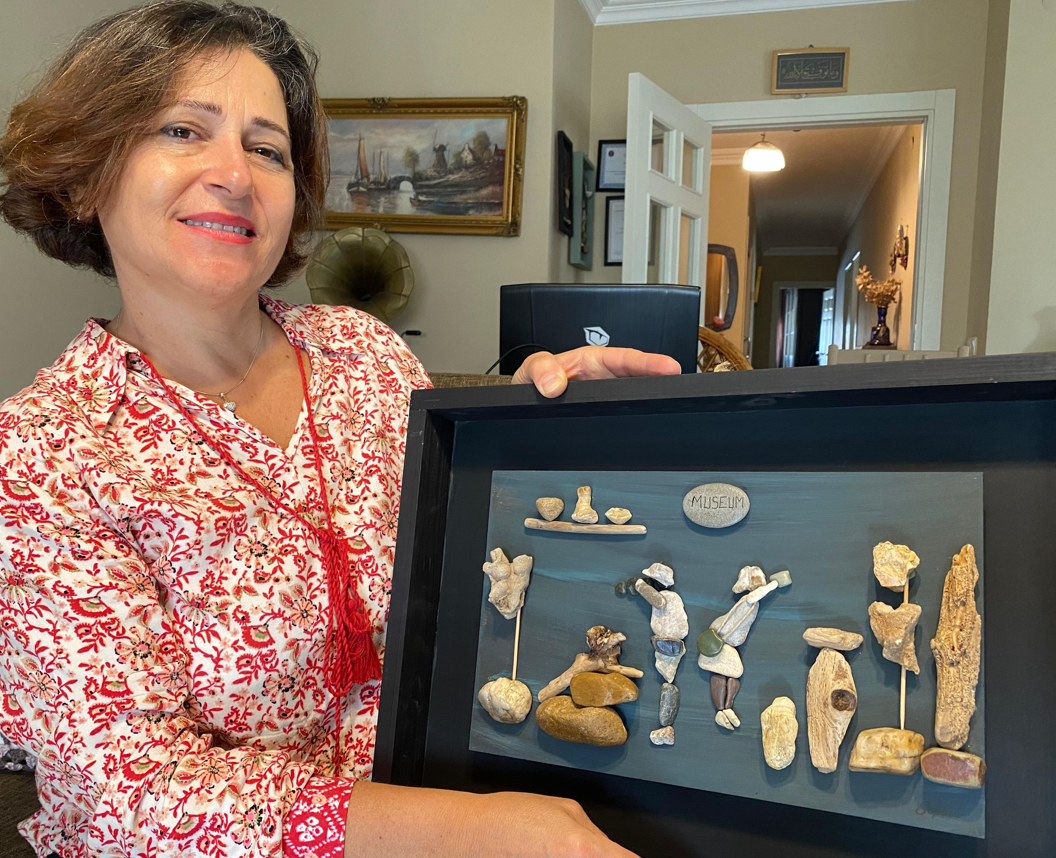 "ESERLER DOĞA SEVGİMİN YANSIMASI"Sopiha Eyüboğlu Ügümü, AA muhabirine, taşlara olan tutkusunun kendisini çakıl taşı sanatçılığına yönlendirdiğini söyledi.