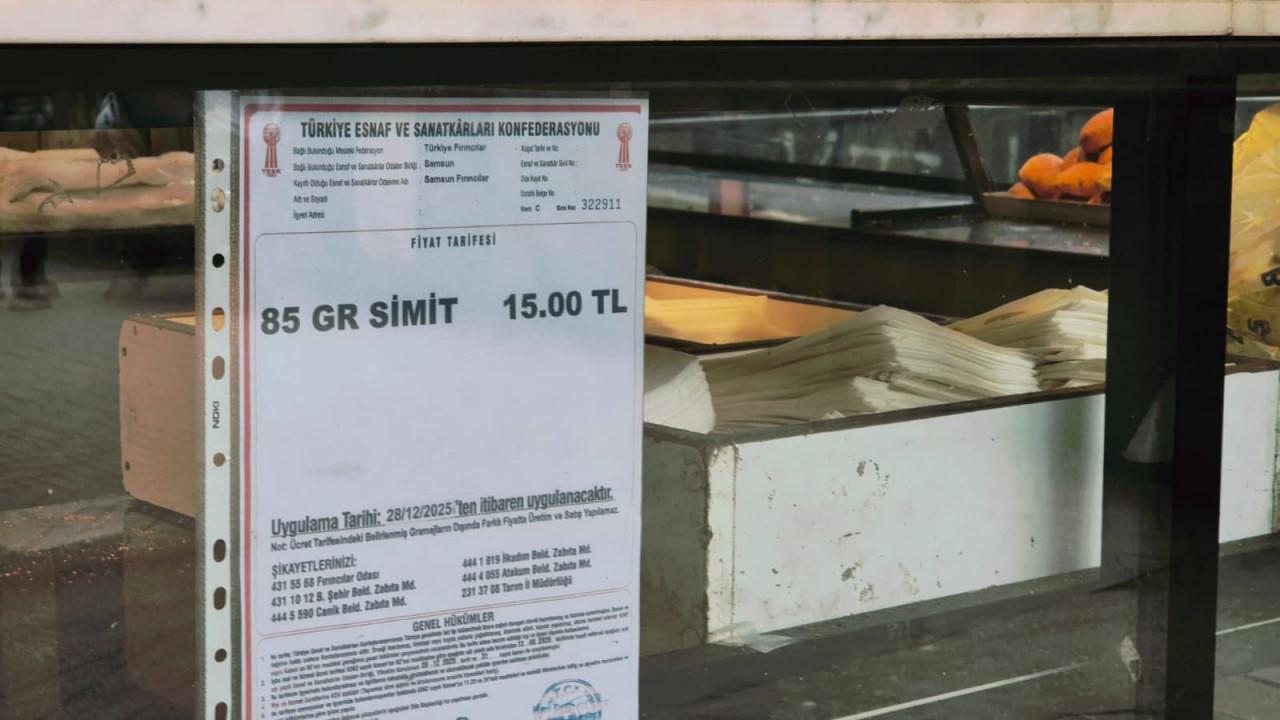 Yeni tarifenin bugün yürürlüğe girmesiyle 85 gram simidin fiyatı 15 TL oldu.
