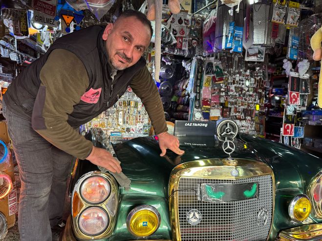 "Çalışma masası olarak kullandığım Mercedes'in her şeyi orijinal, üzerine yan sanayi hiçbir şey koymadım. Hatta eksik parçalarını yurt dışından getirttim. Keşke bu kadar çürümeseydi de yürüyen bir otomobil olsaydı. Bu bizim tarihi eserimiz sayılır, yolda yürüseydi daha mutlu olurdum. Zaten yerinde görünce çok üzülmüştüm. Şu anda yolda böyle araçlar göremiyoruz. Bazen teşvik alabilmek için bu araçları bir yemek parasına hurdaya ayırıyorlar. Bu aracın anısı biter mi? Bu araba kim bilir neler gördü, nerelere gitti? Şu arabaları yok ediyorlar ya üzülüyorum. Ben bu haliyle bile her gün kendi aracımı temizler gibi otomobil masasını cilalıyorum, siliyorum, parlatıyorum. Klasik araçlarla ilgilenmek, onları sevmek beni mutlu ediyor."