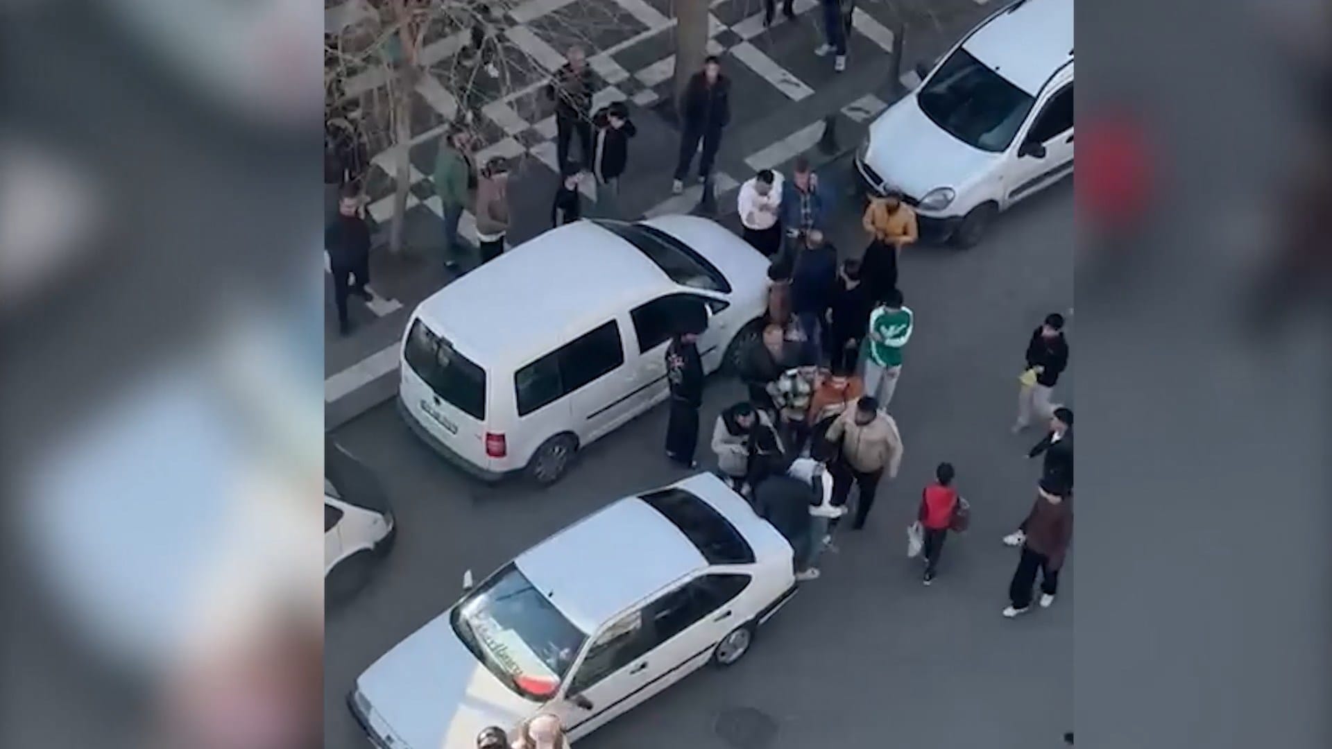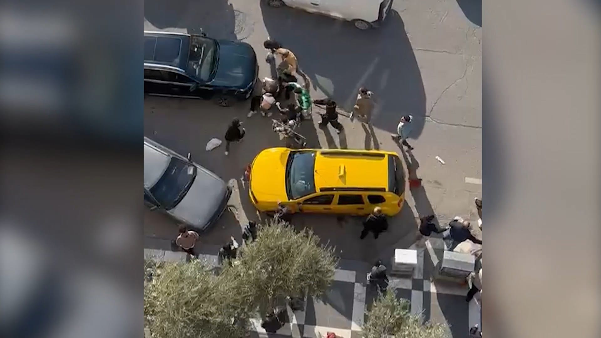 Taraflar, kavga sırasında birbirlerine taş, sopa, fırça sapı ve kemerle saldırdı. Cadde ortasında yaşanan kavga nedeniyle trafik bir süreliğine aksadı.