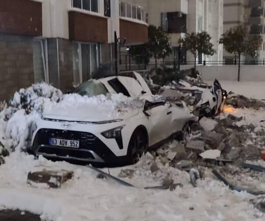 Şanlıurfa'da etkisini gösteren yoğun kar yağışı nedeniyle çatılar çöktü. Olayda park halindeki 67 araçta büyük çapta hasar meydana geldi.