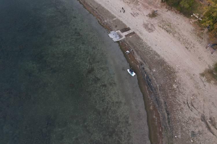 Gölde çekilmenin izleri net bir şekilde belli olurken, dipten yüzeye gelen kabarcıklar ise endişe oluşturdu.