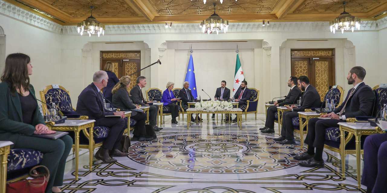 Suriye Cumhurbaşkanı Ahmed Şara, başkent Şam'daki Halk Sarayı'nda düzenlenen toplantıda AB heyetiyle görüştü.