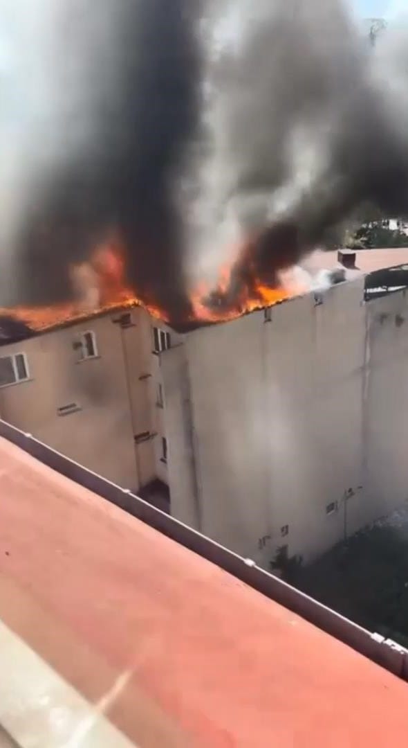 Sarıyer de 5 katlı binada yangın: Alevler tüm çatıyı sardı