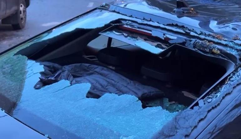 Olay çevredeki bir iş yerinin güvenlik kamerasıyla kaydedildi. Görüntülerde, sokaktaki çınar ağacının şiddetli lodos nedeniyle park halindeki otomobilin üzerine devrildiği, seyir halindeki başka bir aracın ise son anda kurtulduğu anlar yer aldı.