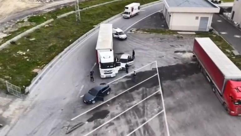 Sarıyer de dronla takip edilen TIR da kaçak tütün mamulleri ile çeşitli ürünler ele geçirildi