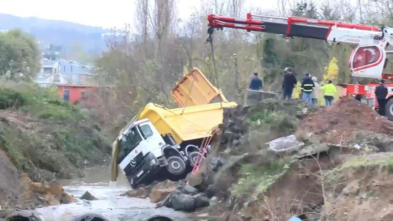 Sarıyer de yol çöktü; dereye düşen araçlar için kurtarma çalışması sürüyor