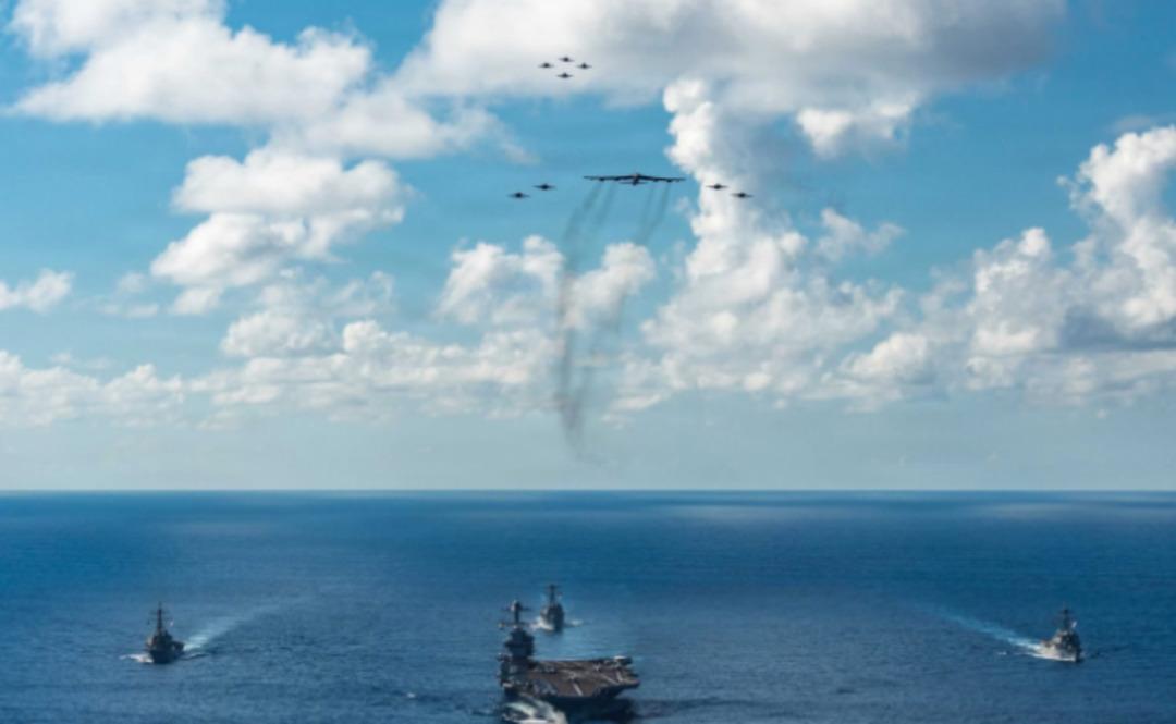 En büyük uçak gemisi USS Gerald R. Ford'un da yer aldığı paylaşımda gemiye çok sayıda savaş uçağının da eşlik ettiği görüldü.
