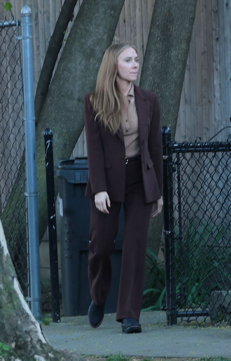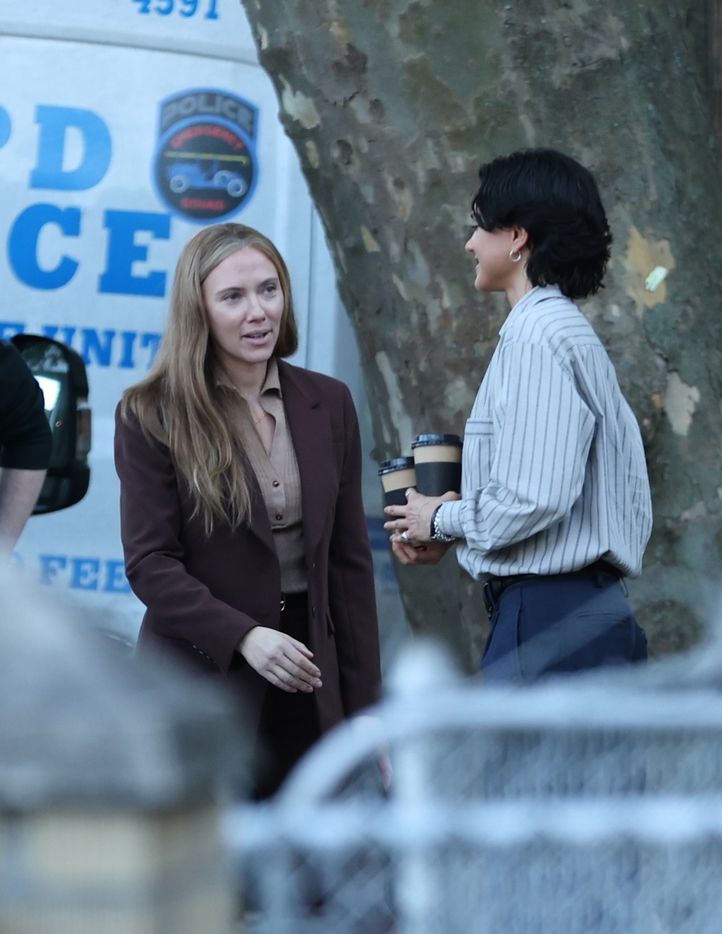 41 yaşındaki Johansson, kahverengi bir takım elbise ve göğsündeki dedektif rozetiyle dikkat çekerek, karakterinin hikayedeki otoriter rolüne dair ilk ipuçları verdi.