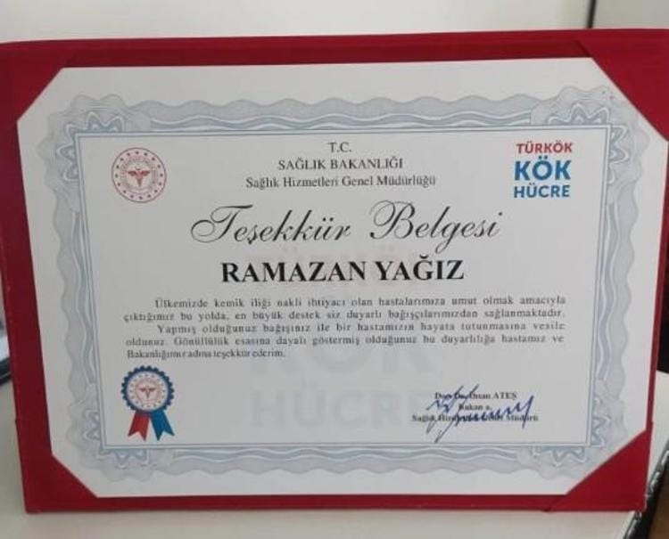Şehit Hava Uçak Bakım Astsubay Başçavuş Ramazan Yağız'ın, büyük bir insanlık örneği sergileyerek 10 yıl önce kök hücre bağışında bulunduğu anlaşıldı. Yıllar sonra, 2023 yılının Mart ayında, bağışının Ankara Bilkent Şehir Hastanesi'nde tedavi gören bir kanser hastasıyla uyumlu olduğu haberi geldi. Yapılan testlerin ardından Haziran 2023'te nakil başarıyla gerçekleşti.