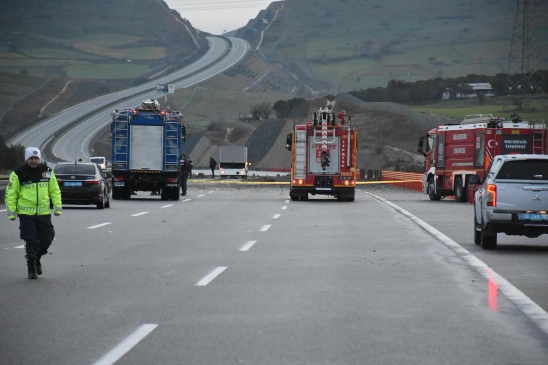 İstanbul-İzmir Otoyolu'nun Karesi mevkisinde yol kenarına düşen uçağın enkazı çevreye dağıldı.İhbar üzerine güvenlik güçleri, itfaiye ve sağlık ekipleri bölgeye sevk edildi.