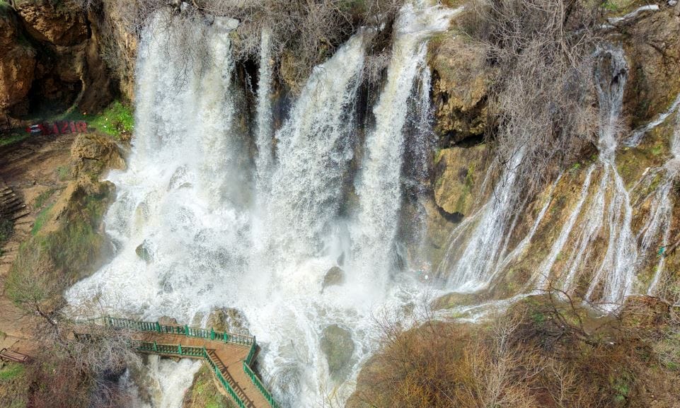22 METREDEN 7 FARKLI DÜŞÜŞ1350 rakımda konumlanan ve 22 metre yükseklikten dökülen şelale, 7 ayrı noktadan süzülen sularıyla Anadolu'nun en etkileyici doğal alanlarından biri olma özelliği taşıyor. Yağışlarla birlikte son 20 yılın en coşkun halini alan şelale, çok sayıda ziyaretçi çekmeye başladı.