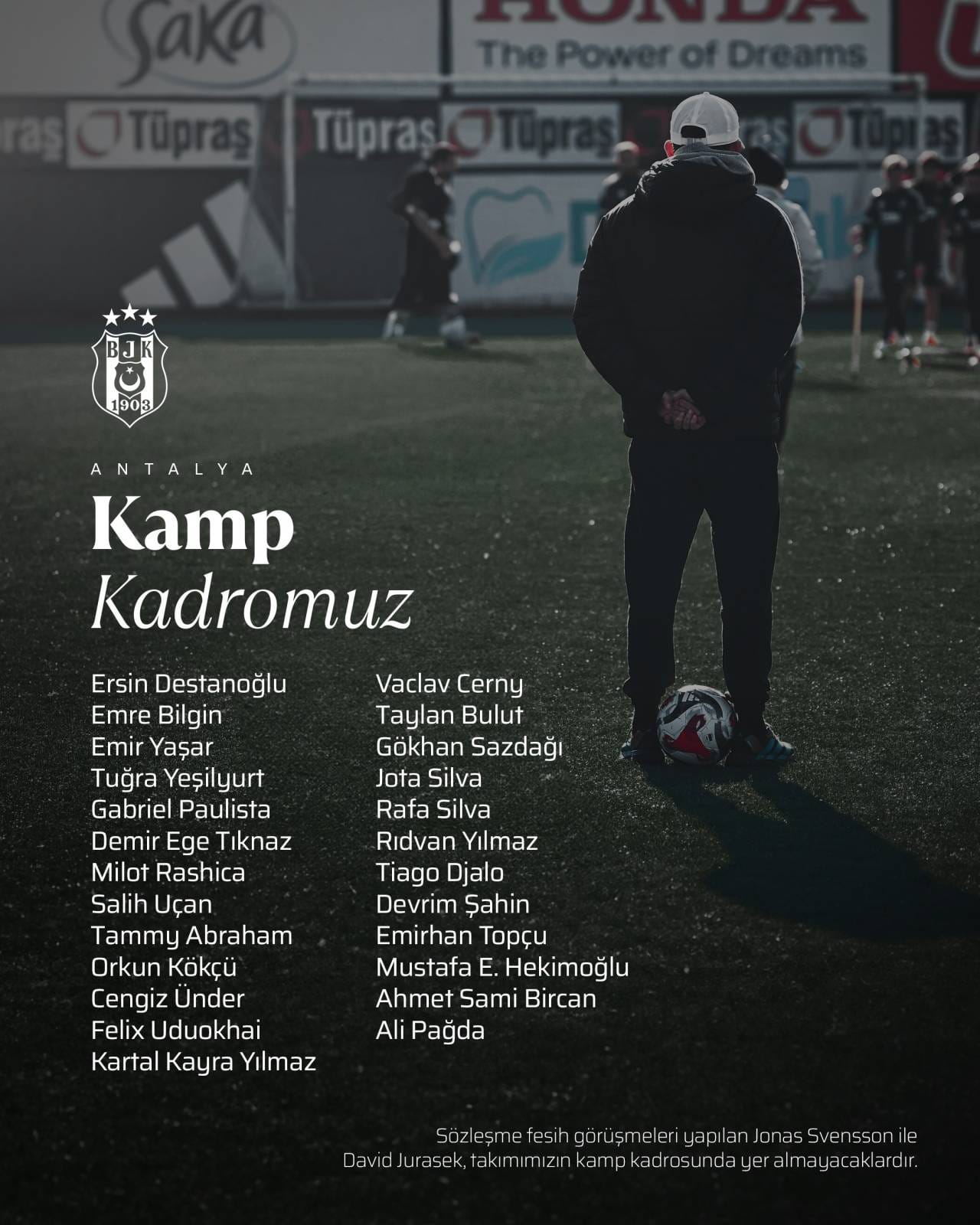 Süper Lig’in ikinci yarısı için Antalya’da devre arası hazırlıklarını sürdürecek olan Beşiktaş, kamp kadrosunu duyurdu.