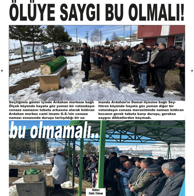 Ardahan merkeze bağlı Ölçek köyünde hayatını kaybeden bir vatandaşın cenazesinde çekilen fotoğraf karesi, sosyal medyada tartışma konusu oldu. Cenaze sırasında çekilen görüntüde, imamın tabuta arkasını dönerek durduğu görülüyor. Söz konusu kare kısa sürede yayılırken, farklı yorumları da beraberinde getirdi.