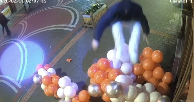 Olay, gece saatlerinde Hükümet Caddesi’nde meydana geldi. Bir kuyumcunun 14 Şubat Sevgililer Günü için iş yerini süslemek amacıyla astığı renkli balonlar, caddeden geçen kişi tarafından sökülerek yere atıldı. Bir tane balon alan şüpheli diğer balonları da üzerinde zıplayarak patlatırken, o anlar iş yerinin güvenlik kamerasına yansıdı.