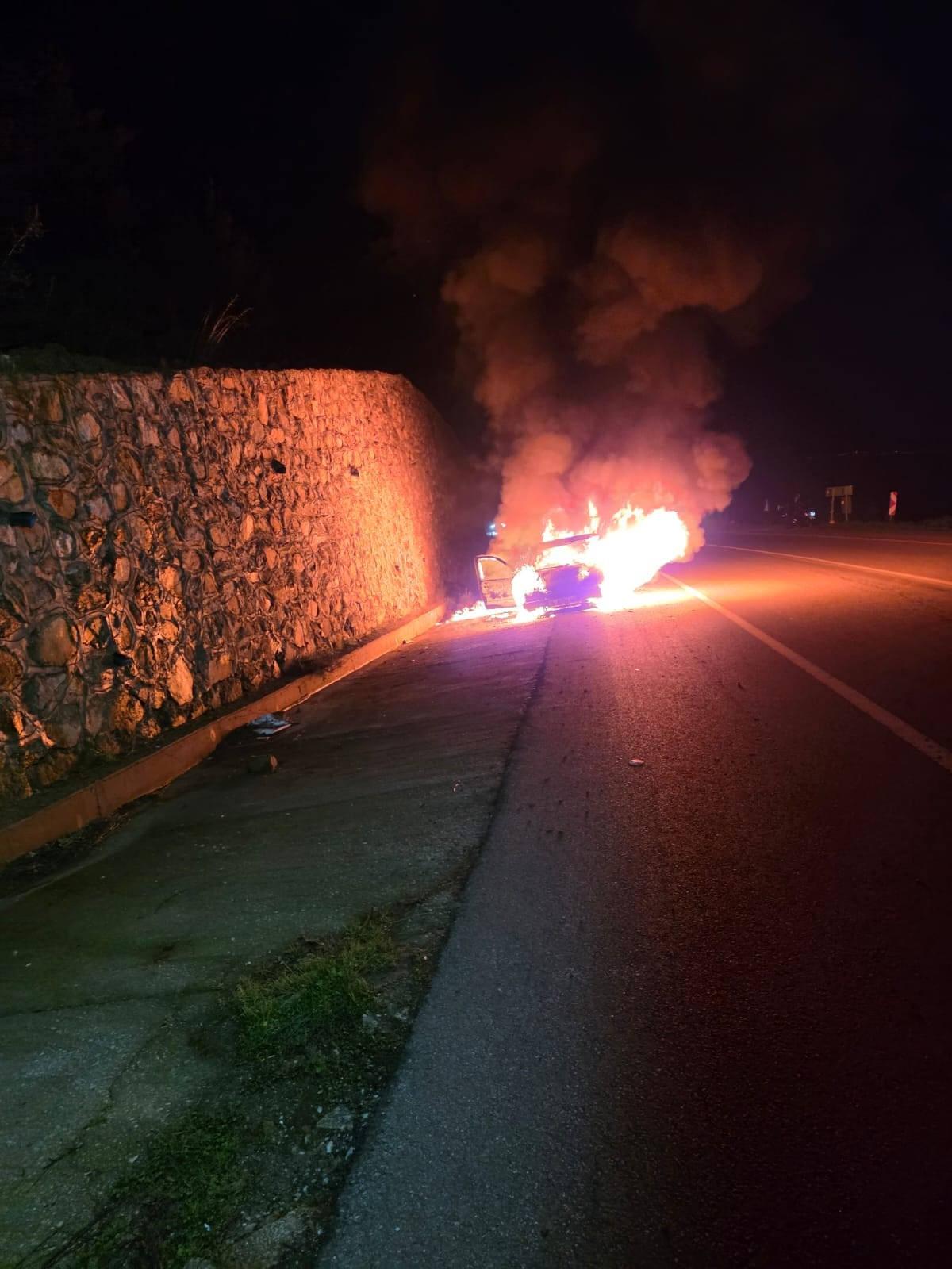 Seyir halindeki araç alev aldı