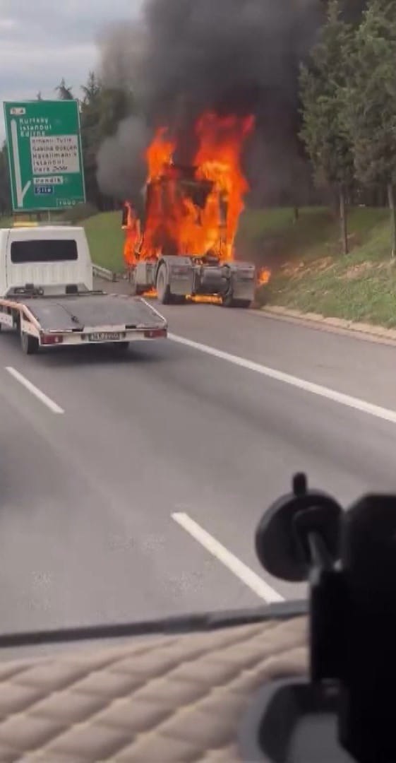 İstanbul Tuzla'da Anadolu Otoyolu Orhanlı Gişeler İstanbul istikametinde saat 16.10 sıralarında meydana gelen olayda, edinilen bilgilere göre Fatih A.(25) yönetimindeki 34 KEU 739 plakalı dorsesiz TIR, seyir halindeyken alev aldı.