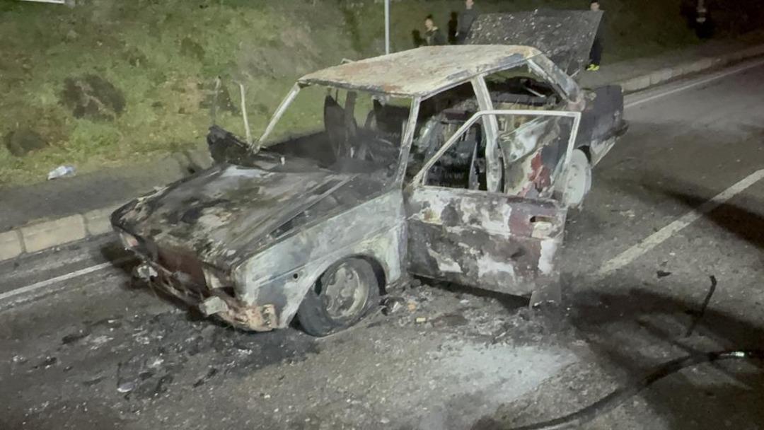 Durumu fark eden sürücü aracını durdurarak dışarı çıktı ve çevreden yardım istedi. Kısa sürede alev topuna dönen otomobil tamamen yanarak demir yığınına döndü.