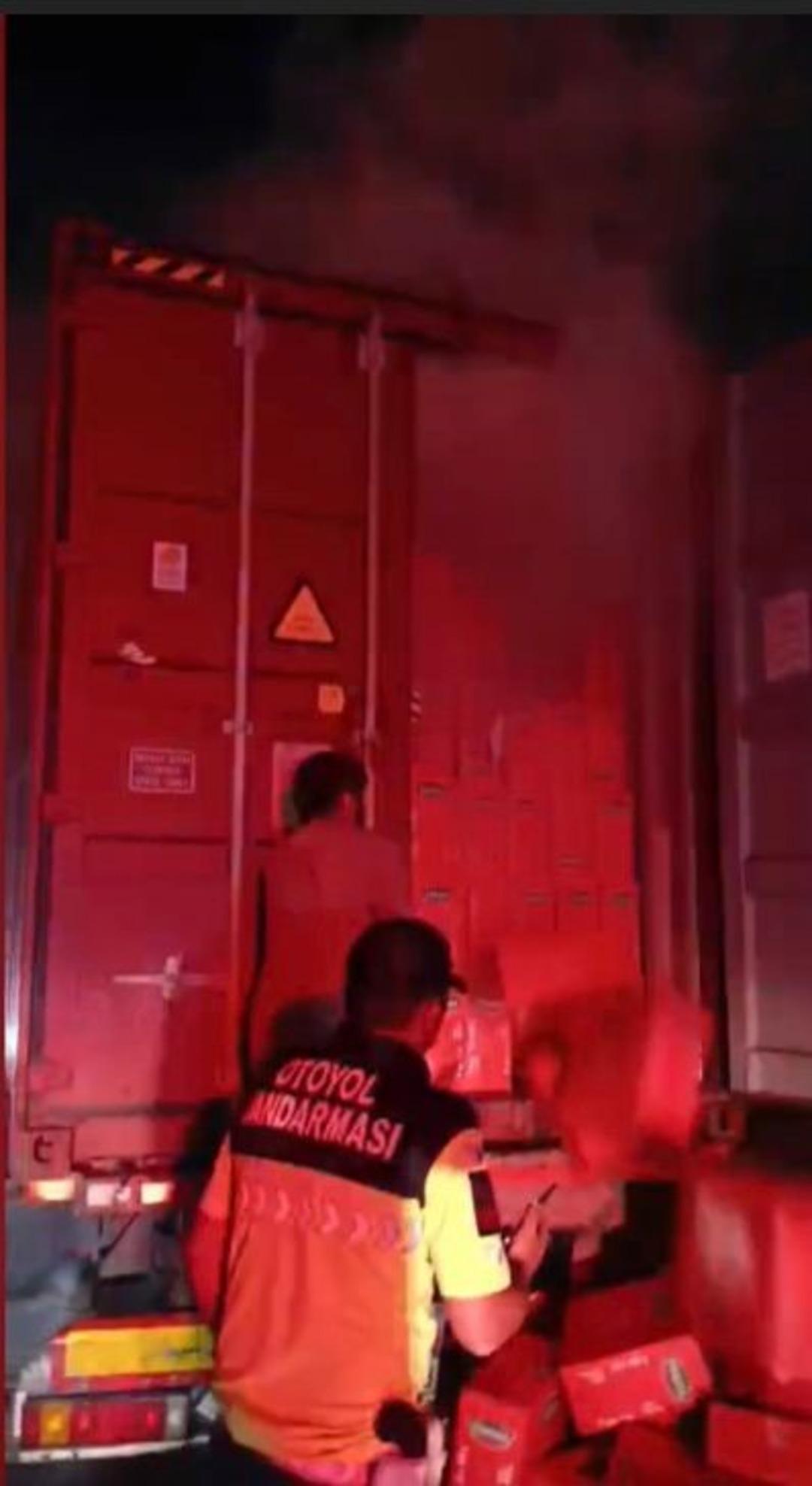 Aracını emniyet şeridine çeken sürücünün durumu bildirilmesi üzerine olay yerine itfaiye ve jandarma ekipleri sevk edildi. Olay yerine gelen itfaiye ekiplerinin müdahalesiyle yangın kontrol altına alınarak söndürüldü. Yangında dorsenin bir kısmı zarar görürken, tır sürücüsünün dorsedeki makarnaları dışarı atarak zararı en aza indirmeye çalıştı.