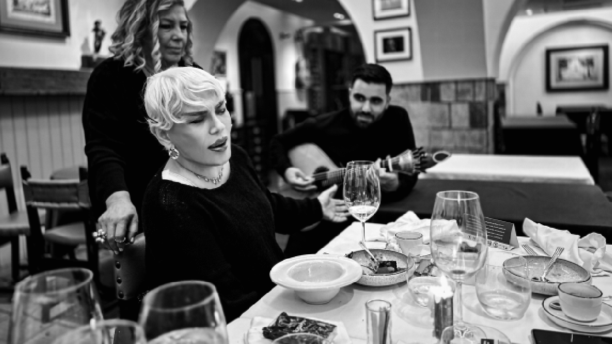 Karede, Aksu’nun arkasında bir gitaristin ona eşlik ettiği, masada ise samimi bir akşam yemeği yendiği görüldü.