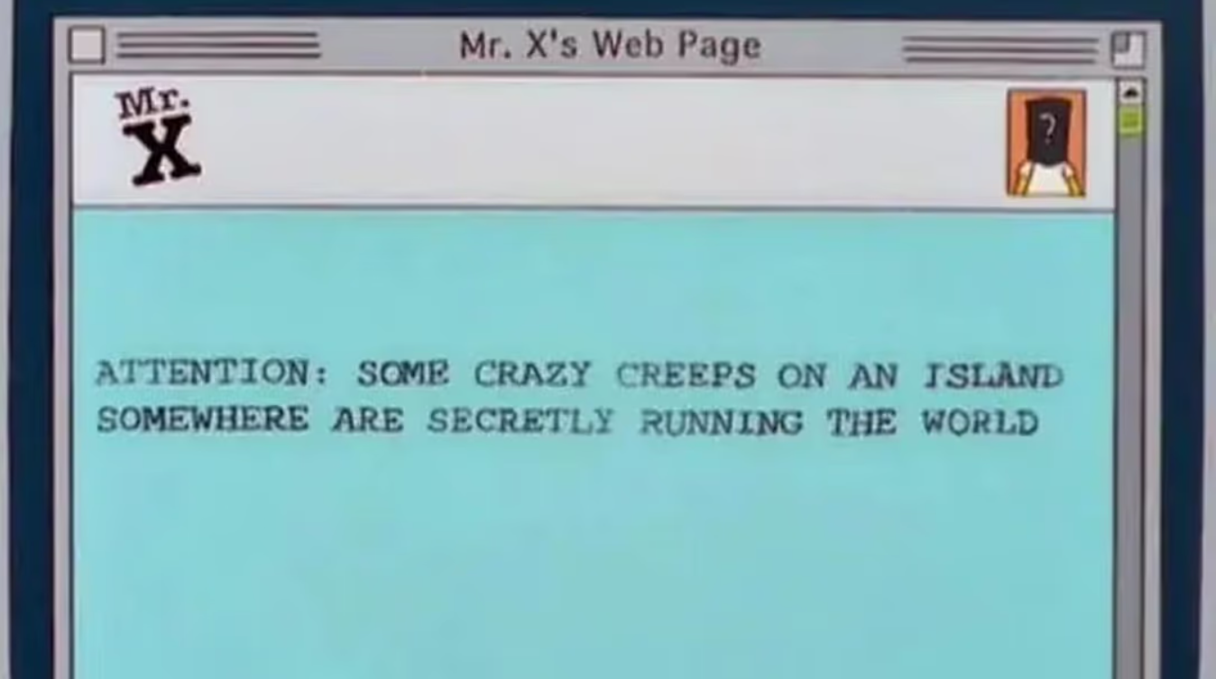 EPSTEIN'I DA MI BİLDİLER?On ikinci sezonda yer alan bölümde Homer, “Bay X” takma adıyla bir blog açıyor ve internet üzerinden komplo teorileri yayıyor.