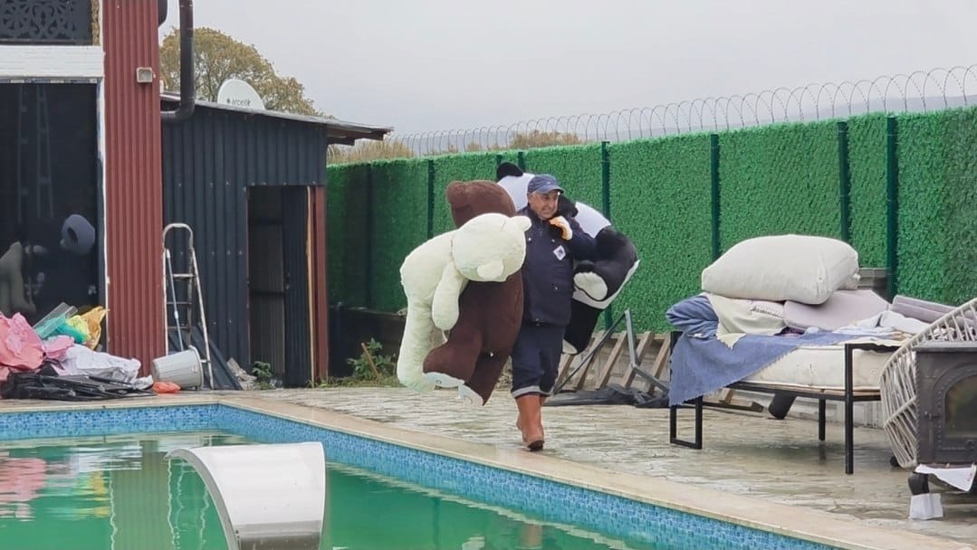 CİNAYET MAHALLİ VE YANINDAKİ 3 VİLLA İÇİN YIKIM KARARICinayetin işlendiği villanın kaçak olduğunun belirlenmesinin ardından belediye ekipleri tarafından bir çalışma başlatıldı. Villada yapılan incelemeler sonucunda yapı için yıkım kararı çıkarıldı. Dün saat 10.30 sıralarında jandarma ve zabıta ekiplerinin denetiminde olay yerine gelen ekipler, villanın yıkımını gerçekleştirdi. Yapılan tespitler neticesinde, cinayetin işlendiği villanın yanı sıra kaçak olduğu belirlenen 3 villa daha yıkıldı. Böylece toplamda 4 villa yıkılmış oldu.