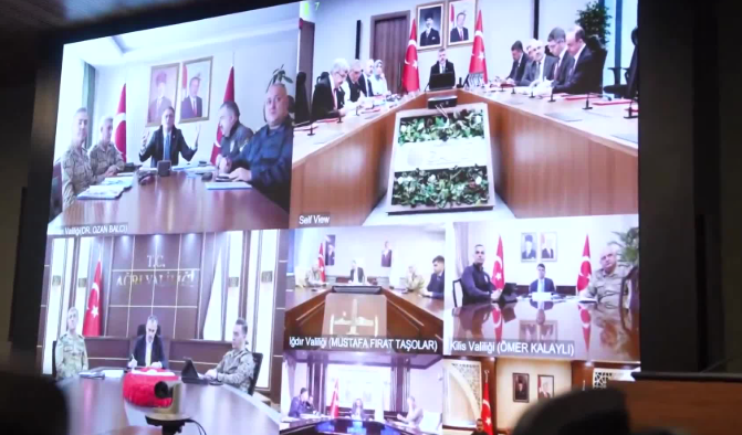 İçişleri Bakanlığı, sınır illerindeki güvenlik durumunu ve sahadaki uygulamaları değerlendirmek amacıyla bir koordinasyon toplantısı gerçekleştirdi. İçişleri Bakanı Mustafa Çiftçi'nin başkanlığında video konferans sistemi üzerinden yapılan toplantıya; bakan yardımcıları, ilgili birim yöneticileri ile sınır hattında görev yapan Ağrı, Hakkari, Iğdır, Van, Kilis ve Hatay valileri katılım sağladı.